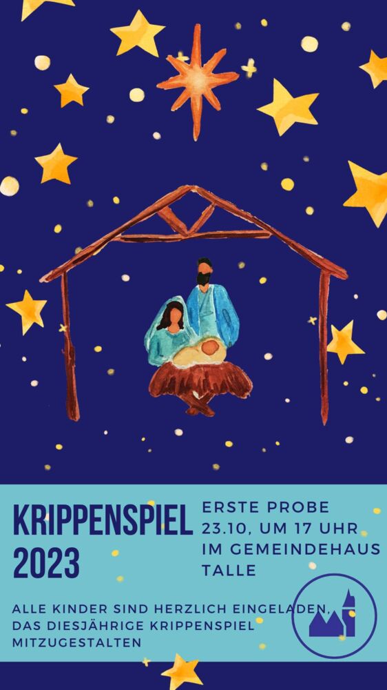 es ist wieder soweit - das Krippenspiel der ev.-ref. Kirchengemeinde Talle steht vor der Tür! Wir suchen noch fleißige Mitspielerinnen und Mitspieler zwischen 4 und 14 Jahren, die Lust haben, gemeinsam mit uns die Weihnachtsgeschichte auf die Bühne zu bringen.